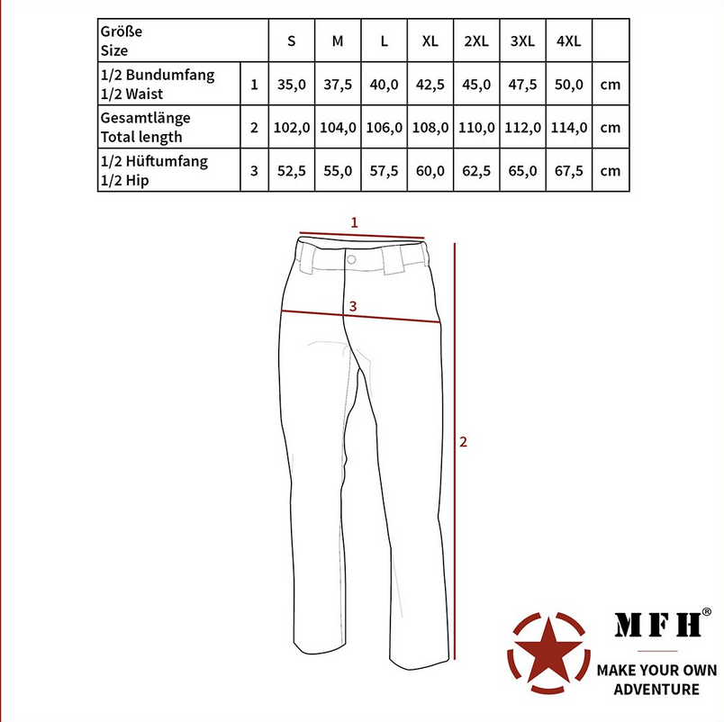 Stiekboorden op tailleband en beenuiteinden 2 heupzakken 1 achterzak aan de rechterkant