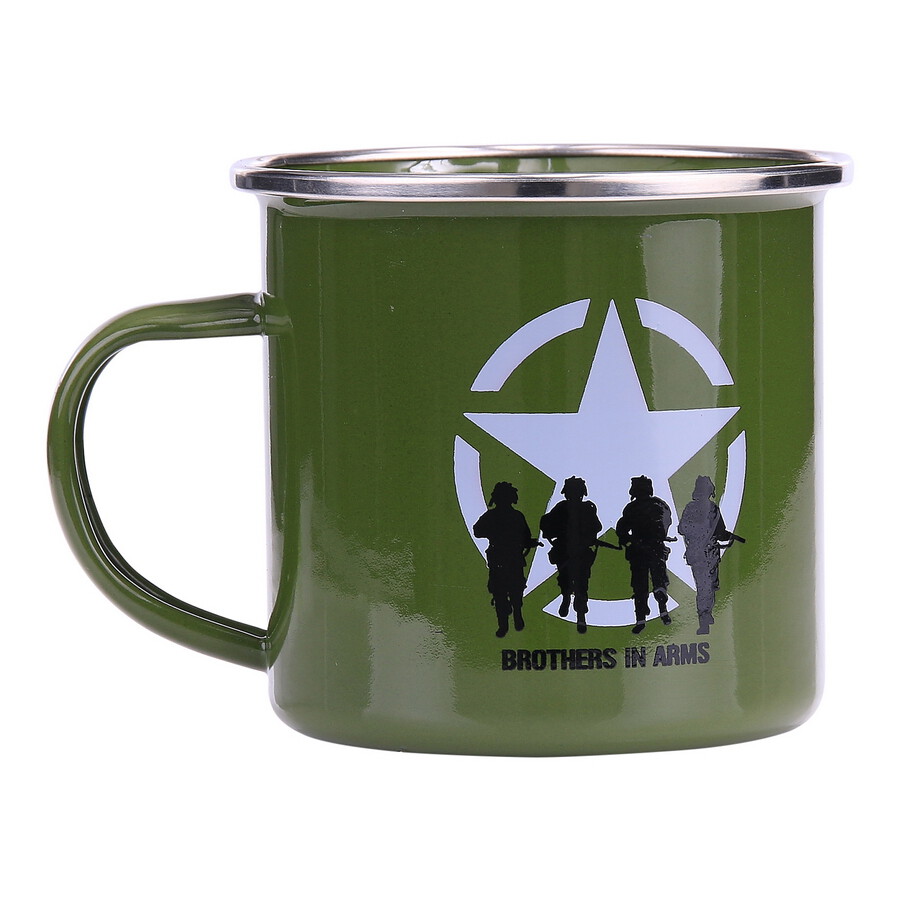 Emaille mok met Brothers in Arms print. De mok is gemaakt van 100% emaille