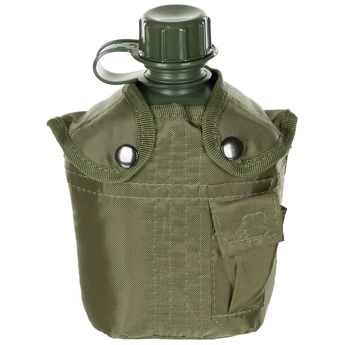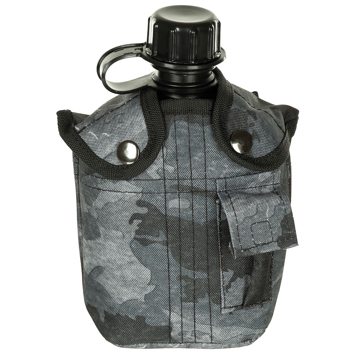 met schroefdop bevestigd aan de flessenhals gevoerde buitenkant met drukknopen klein buitenvak met klittenbandsluiting 2 bevestigingsclips voor bevestiging aan koppel, riem, rugzak enz. Afmetingen: ong. 13 x 21 x 8 cm (B x H x D) Gewicht: ca. 200 g