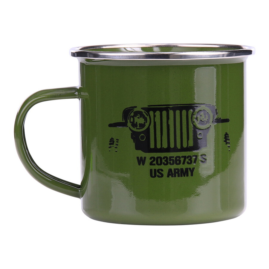 Emaille mok met U.S. Army Jeep print. De mok is gemaakt van 100% emaille