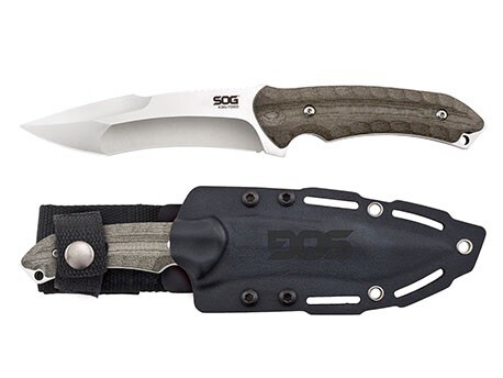 De SOG Kiku messenserie is het resultaat van een samenwerking tussen SOG met Kiku Matsuda, een zeer beroemde Japanse messenmaker. De SOG Kiku Fixed Satin is een vaststaand mes met een Drop-Point lemmet. De stijlvolle micarta-handgreep is robuust en makkelijk te reinigen, terwijl het AUS-8 roestvrijstalen lemmet is gemaakt met het vertrouwen dat je er jarenlang gebruik van kunt maken.