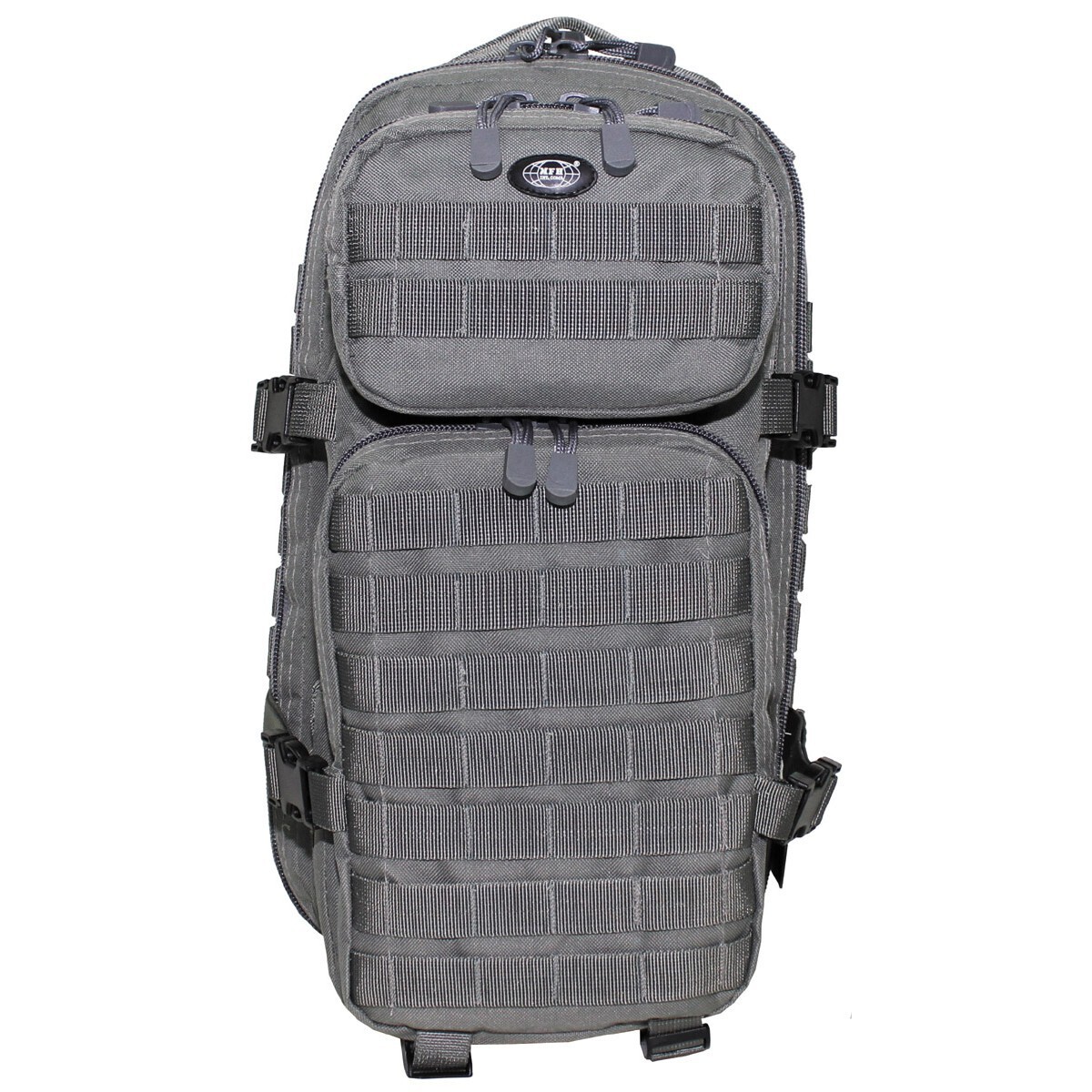Verstelbare gewatteerde banden met metalen D-ringen Verstelbare afneembare heupgordel gewatteerd ruggedeelte met een groot insteekvak met klittenband voor hydratatie-padding gemaakt van ademende mesh-stof 1handgreep aan de bovenzijde 1 groot hoofdcompartiment met 2-way RV, 1 kleine tas met ritssluiting en 1 groot gaasvak 1 klein hoofdvak met inschuifvak en 2 aangehechte mesh-vakken 1 klein voorvak met 2- wegritssluiting 1 groot voorvak met 2-wegritssluiting, 1 inschuifvak en 4 penhouders , elk 2 compressieriemen aan de zijkanten en daaronder diverse Molle- lussen aan de voor- en zijkant Capaciteit: ca. 30 l Afmetingen: ca. 23 x 44 x 24 cm (B x H x D) Gewicht: ca. 1,2 kg Materiaal: 100% polyester